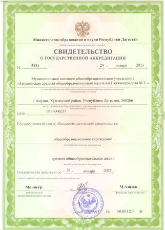 | Полное наименование образовательной организации* | Муниципальное казенное общеобразовательное учреждение "Амушинская средняя общеобразовательная школа им. М.Т. Гаджимурадова " |